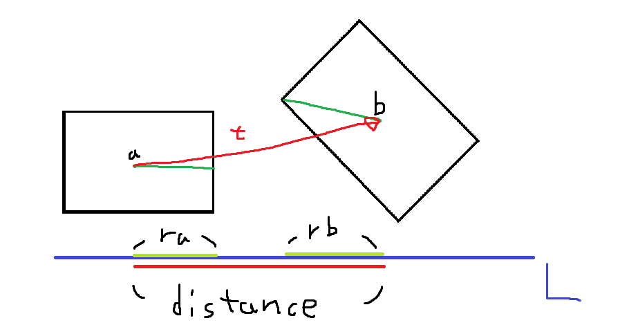 distance >= ra + rb일경우 충돌하지 않은경우이고